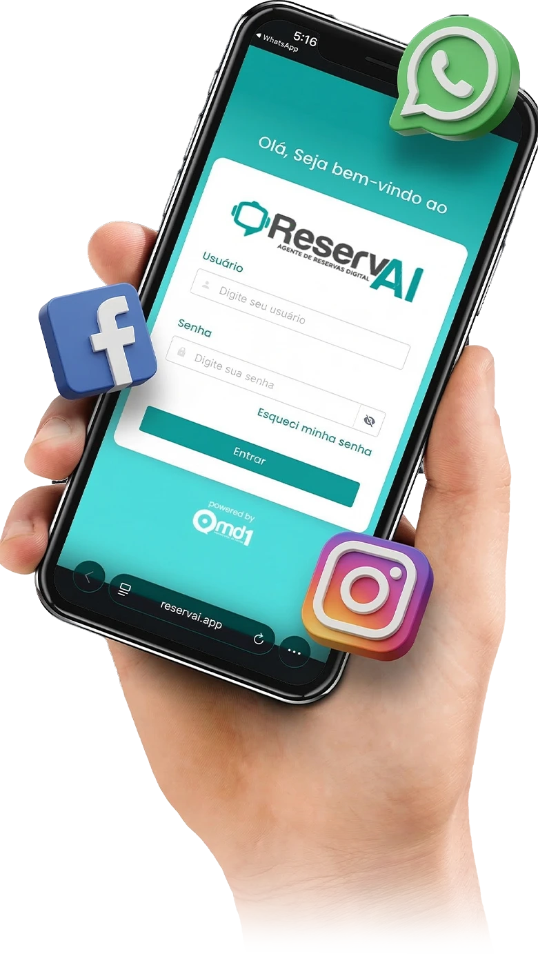 O ReservAI App é uma multiplataforma que atua nos principais canais de comunicação do mundo.